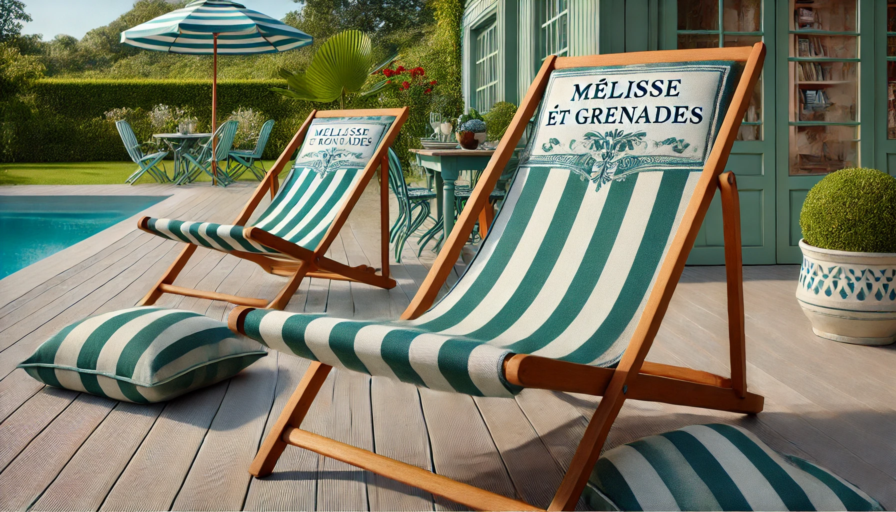 Offrez une seconde vie à votre chilienne avec la toile « Mélisse et Grenades » signée Françoise Saget. Une invitation à la détente grùce à son motif végétal raffiné, qui allie la fraßcheur des feuilles de mélisse et la gourmandise des grenades pour un rendu chic et naturel.