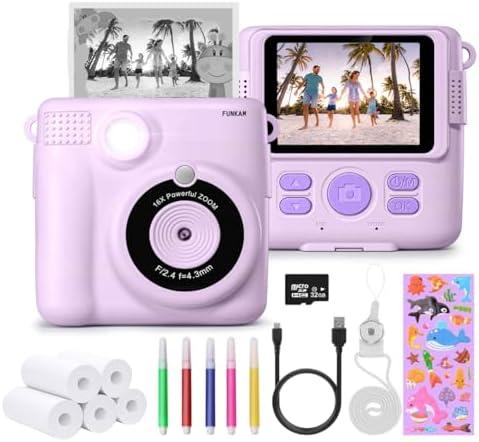 FUNKAM Appareil Photo Enfant Instantanée – 2,4″ HD 1080P – avec Carte SD 32 GB, 5 Marqueurs, Autocollants, 5 Rouleaux de Papier, Pendentif. Appareil Photo Enfants et Filles de 3 à 14 Ans