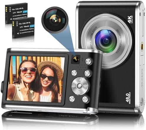 Appareil Photo numérique, Appareil Photo numérique autofocus 4K avec caméra Avant et arrière, HD 48MP avec écran 2.8″, Appareil Photo Compact d’entrée de Gamme (Noir)