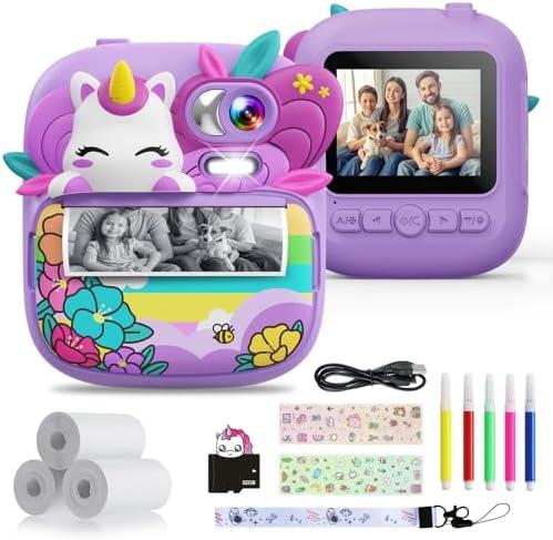 Appareil Photo Instantané Enfant, TIATUA 2,4″ Écran 1080P HD Appareil Photo Numérique Enfant avec Carte 32GB et Papier Photo Imprimé, Stylos Colorés, Cadeau pour Filles Garçons 3-12 Ans