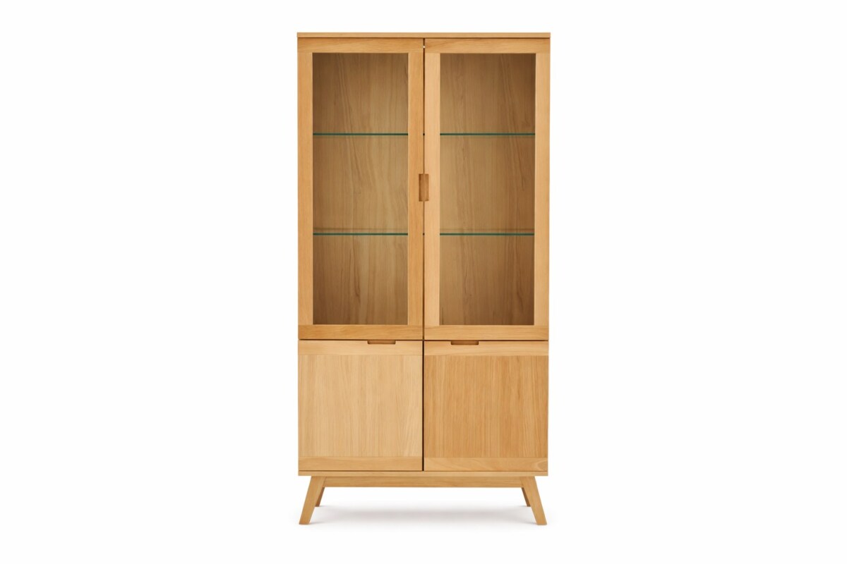 Vaisselier vitrine 4 portes combinant portes vitrées et portes pleines, avec étagères réglables, conçu pour offrir à la fois mise en valeur et rangement discret.