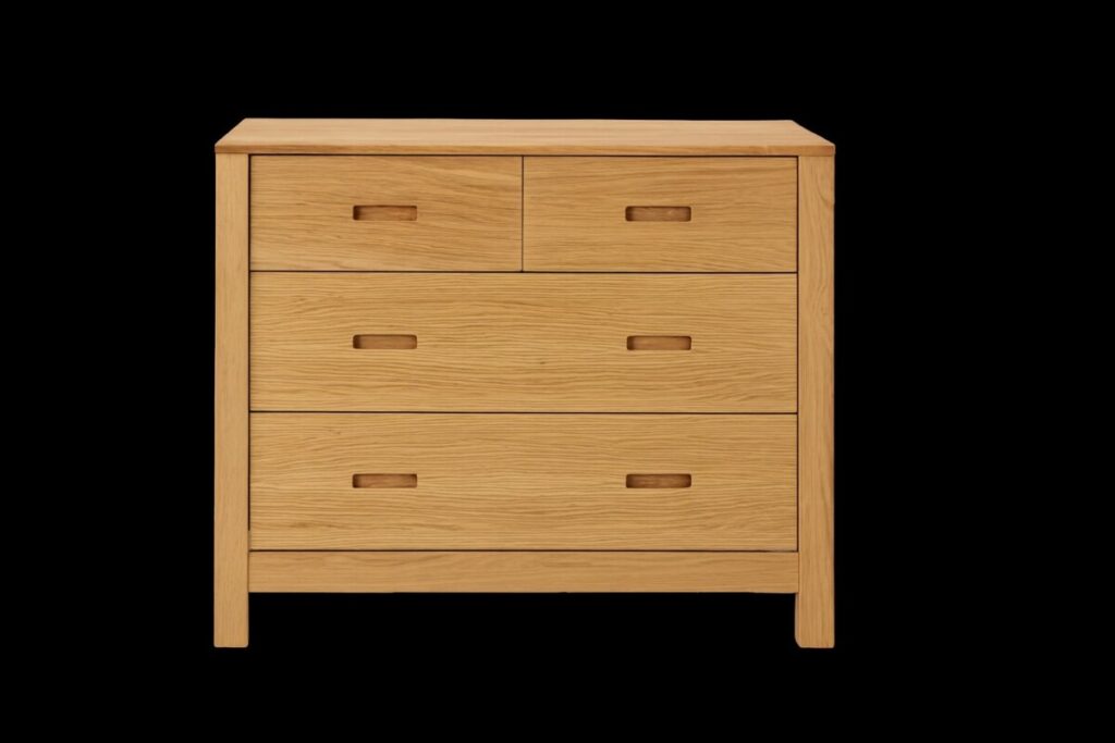 Son design sobre et naturel, avec une finition huilée en chêne, s’intègre à tous les types d’intérieur. Que ce soit dans une chambre parentale, une entrée ou un salon, elle apporte chaleur, caractère et fonctionnalité grâce à ses 4 grands tiroirs de rangement.