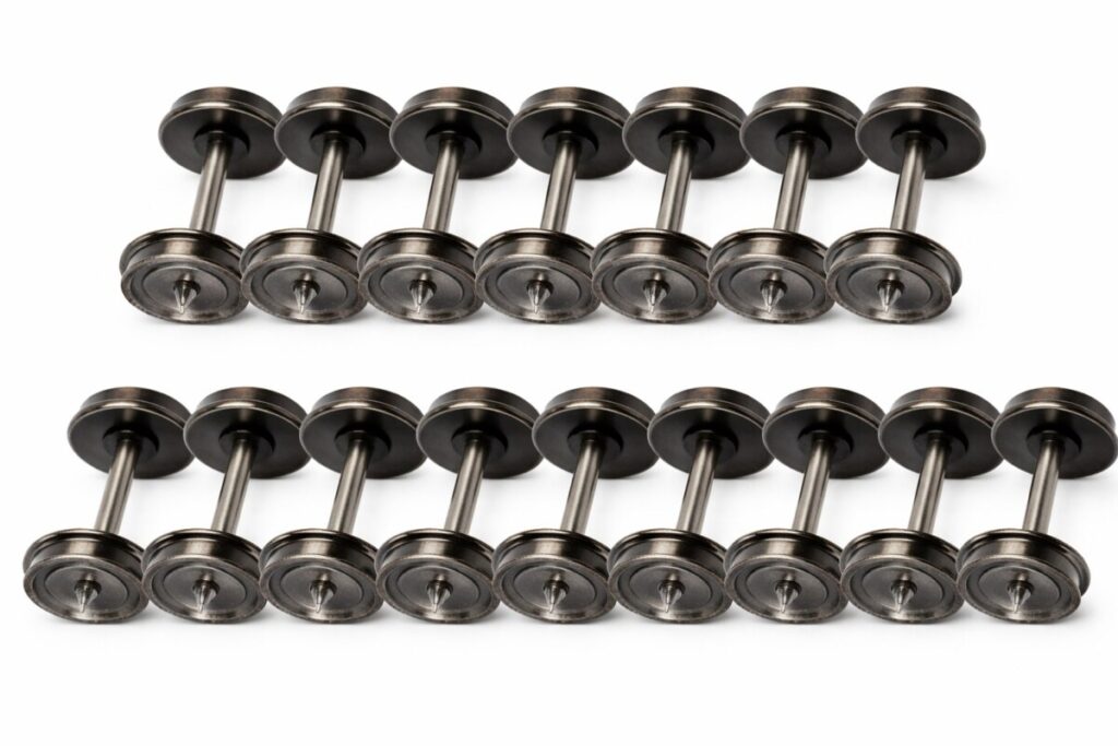 Remplacer ses roues plastiques par des modèles en métal 33″ change l’expérience de jeu et de collection. Ce lot Evemodel C8725 ajoute un réalisme visuel, améliore le roulement, réduit l’usure des rails et augmente la valeur de vos wagons.