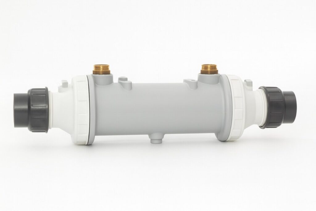 Ce qui rend cet échangeur particulièrement séduisant, c’est son efficacité à transférer la chaleur et sa robustesse. Le choix du titane pour le faisceau de tubes garantit une résistance totale à la corrosion, même en eau salée ou traitée au chlore.