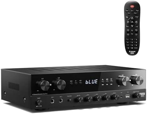 Donner Audio Amplifier, HiFi Amplifier, 1000W Max Power 4 Channels with Bluetooth 5.0, USB, FM, 2 Mic Inputs, RCA, Fiber/Coaxial Inputs for Home Speakers, Karaoke