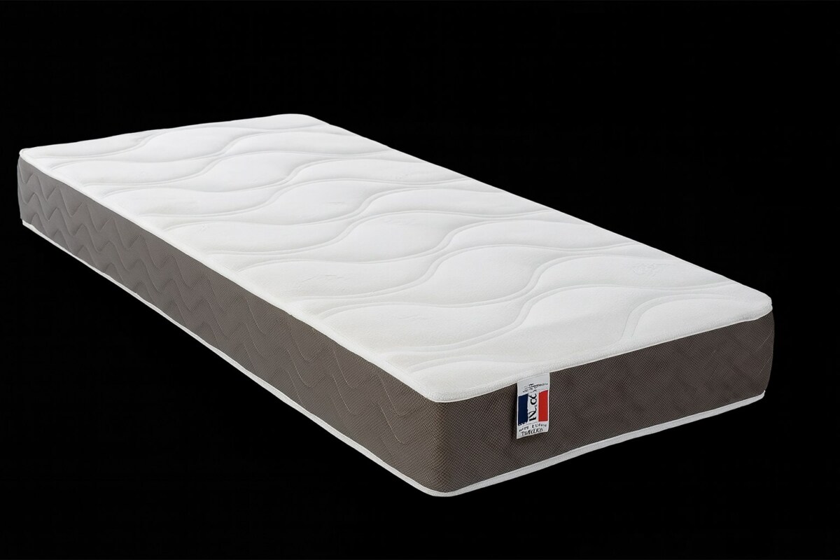 Pensé pour une première installation ou un couchage d’appoint de qualité, ce matelas offre un accueil tonique et un soutien très ferme, avec une mousse haute densité et un garnissage en ouate. Il est également traité contre les acariens, les bactéries et les flammes, tout en respectant une production locale à impact limité.