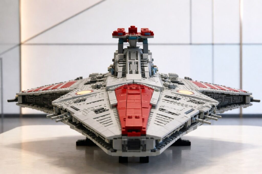 Le Venator-class Republic Attack Cruiser 75367 s’adresse clairement aux adultes et aux passionnés de modèles complexes. Chaque section construite donne forme à un vaisseau iconique, avec des proportions impressionnantes et un rendu pensé pour l’exposition.