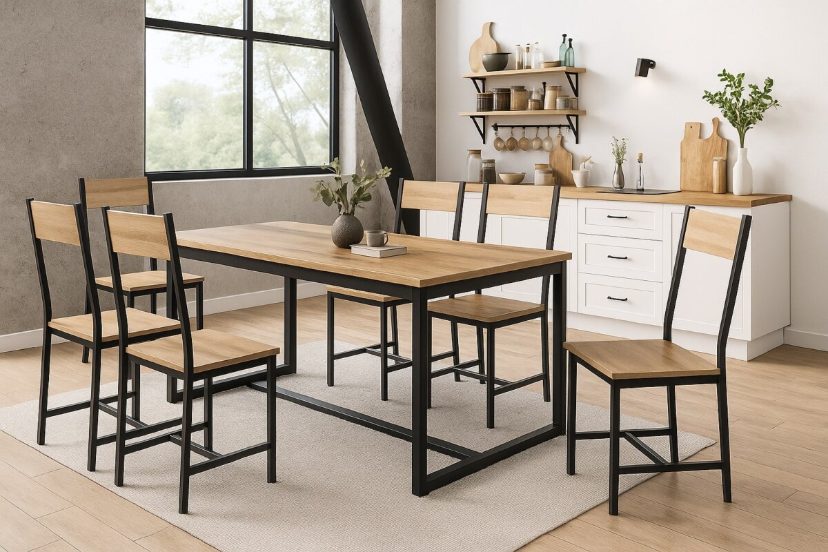 Envie de donner du caractère à votre coin repas ? Avec ce lot de 6 chaises DETROIT en métal noir et assise bois clair, vous misez sur le style industriel tendance à un prix très accessible. Proposées à 134,99 € (soit à peine 22,50 € la chaise), ces assises robustes et élégantes font rimer design et budget maîtrisé.