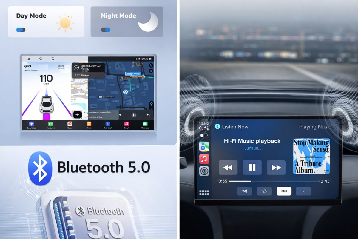 Le point fort majeur est l’intégration du CarPlay sans fil, encore rare à ce niveau de prix. Cela apporte un confort quotidien immédiat. La version V9 Pro avec 4GB de RAM et 64GB de stockage garantit une utilisation fluide et suffisamment d’espace pour les applications essentielles.