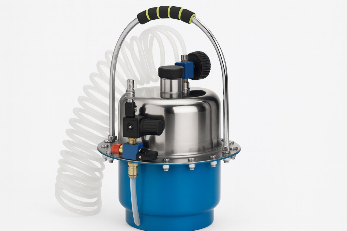 Le tout est livré dans une valise compacte, avec un harnais, une cuve de 5 litres pour le liquide neuf, un collecteur pour le vieux fluide, et des raccords rapides standard (norme Euro). Vous avez tout sous la main. Pas besoin d’être mécano pour réussir votre purge du premier coup.