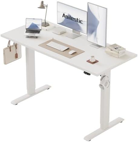 Agilestic Height Adjustable Desk 135 x 60 cm, Electric Height Adjustable Stable Desk with Manual Memory Control, Ergonomic Sit-Stand Computer Desk, White