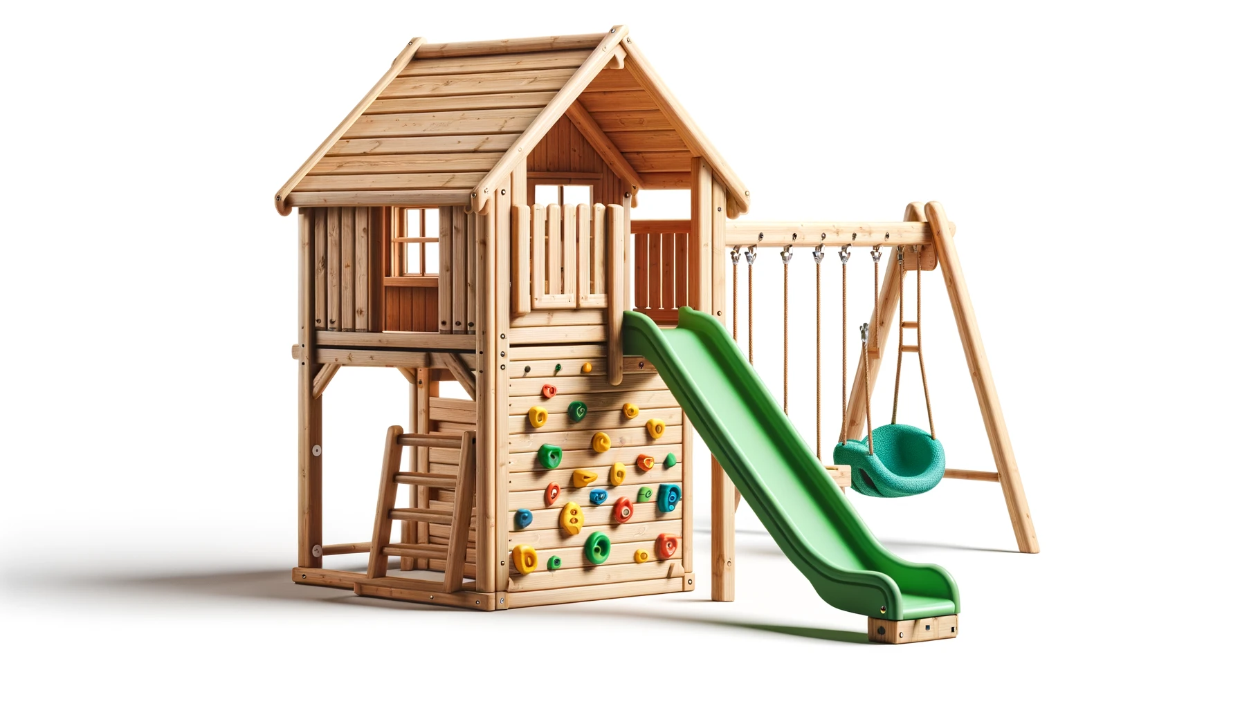 L’Aire de Jeux en Bois Woodi offre le terrain de jeu ultime pour vos enfants, directement dans votre jardin. Combinant 2 balançoires, un toboggan passionnant, une zone d’escalade stimulante et un bac à sable pour des heures de créativité, cet ensemble de jeux extérieur promet divertissement et aventure pour les jeunes explorateurs. Create a world of fun with Woodi, your backyard adventure playground.