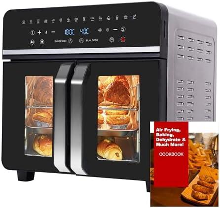 - 2 23L XXL Mini Electric Fryer Oven Oil-Free Emphsism Air Fryer Double Drawer 1800W with LED Display, 15 Programs, Match Cook & Smart Finish, 11 Accessories Include Recipe