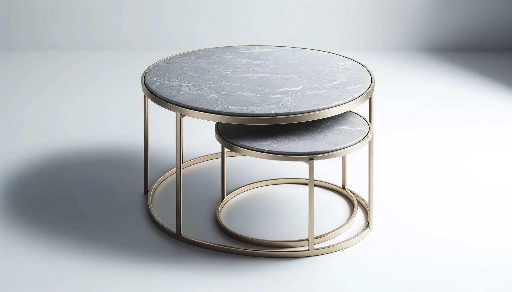 - Table basse gigogne Romeo Gold marbre blanc avec un design moderne et élégant.