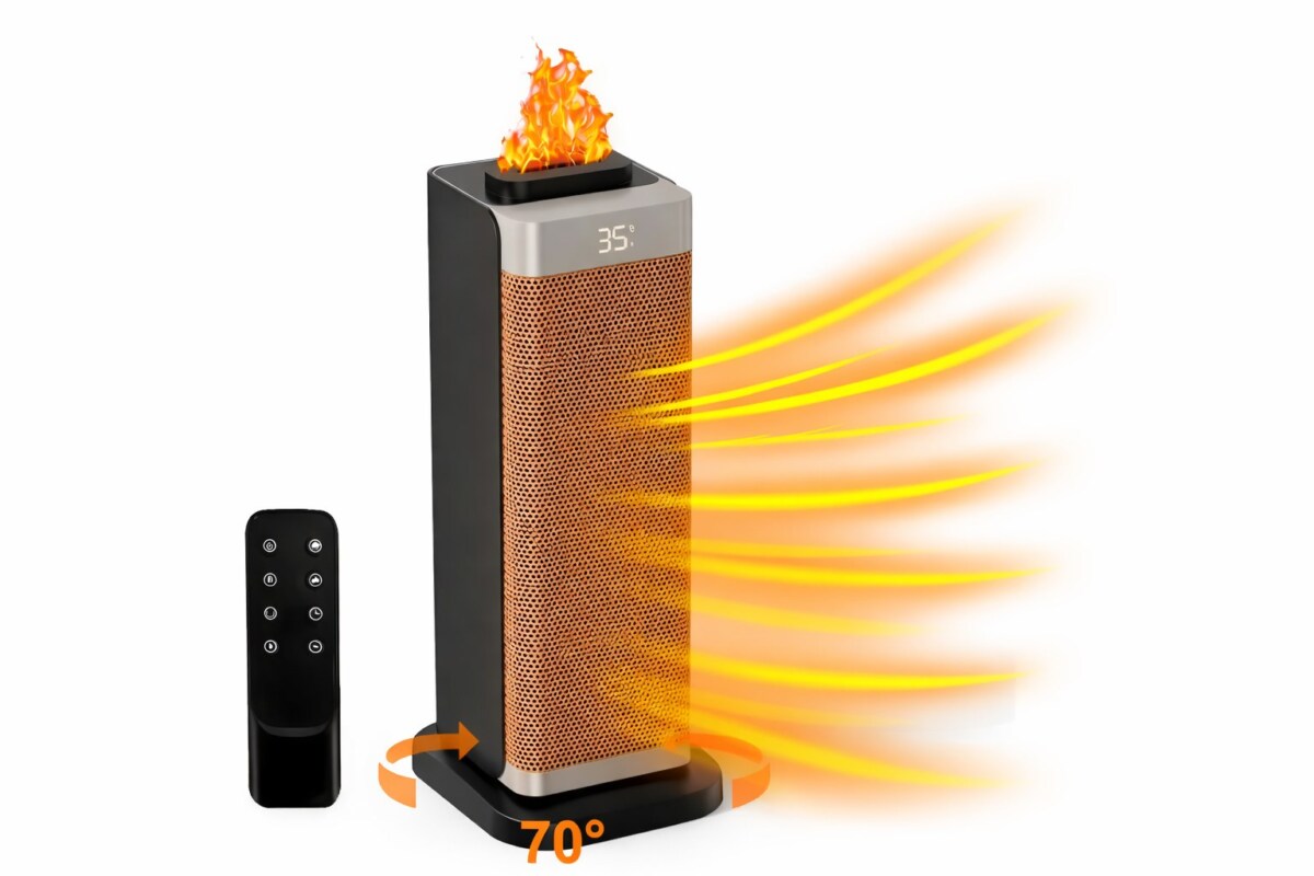 Ajoutez à cela un design vertical compact, une télécommande incluse, et un effet flamme décoratif (selon modèle), et vous avez l’appareil idéal pour passer l’hiver au chaud, avec style.