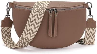 Vezluax 30x20cm Grand sac banane femme bandoulière pour femme cuir vegan sacoche femme bandoulière sacs femme élégant sangle 5 cm de large Pekannuss