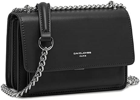 - 5 David Jones – Petit Sac Bandoulière Femme – Mini Pochette Téléphone Portable Cuir PU Rigide – Chaînes Porté Epaule - Besace Rectangle Sacoche Soirée Shopping Ville Tendance - Noir