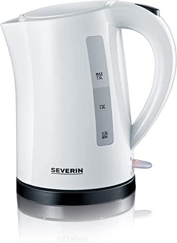 SEVERIN Bouilloire Pratique 1,5L, 2 200W, Niveau D’eau Visible, Bec Verseur Avec Tamis, Socle 360°, Large Ouverture, Blanc, WK 3494