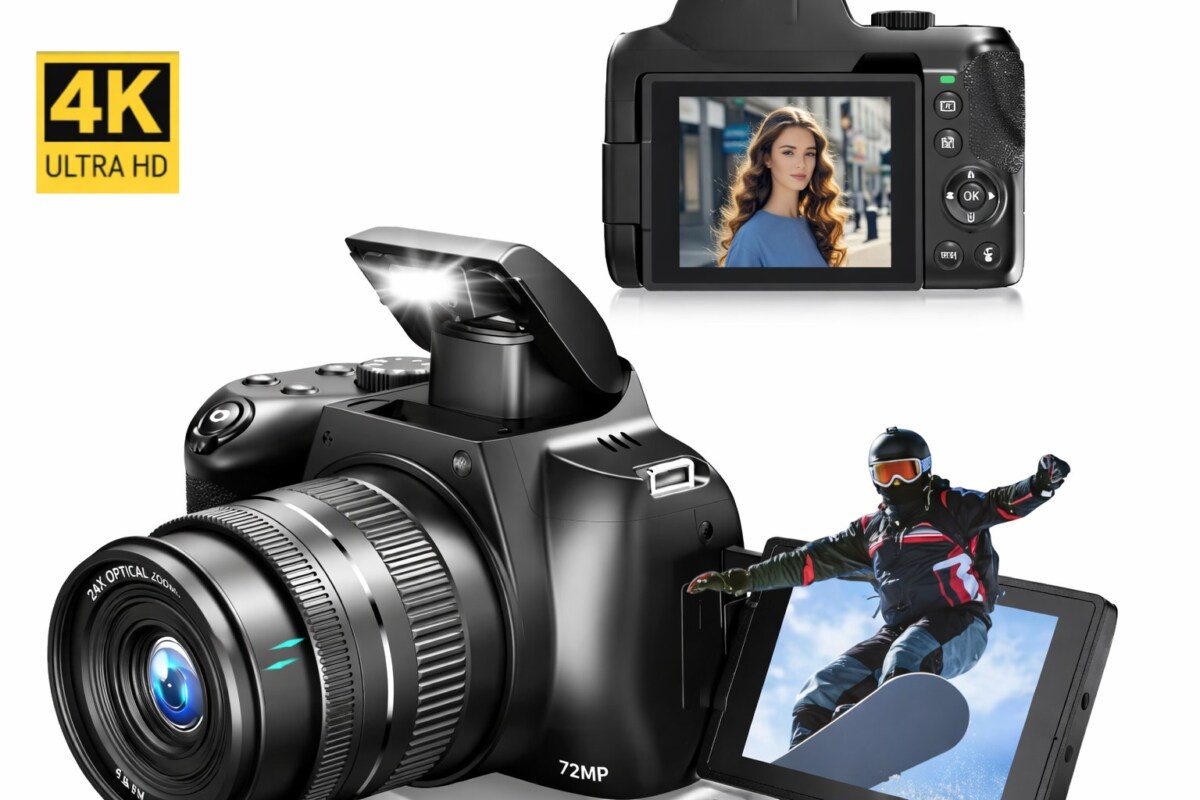 Pour les créateurs en herbe, les étudiants en audiovisuel ou les passionnés de contenu visuel, cet appareil offre un rapport qualité/prix bluffant. À moins de 150 €, vous obtenez la 4K, un capteur 72 MP, du Wi-Fi et un écran rotatif, le tout dans un format nomade et prêt à l’emploi.