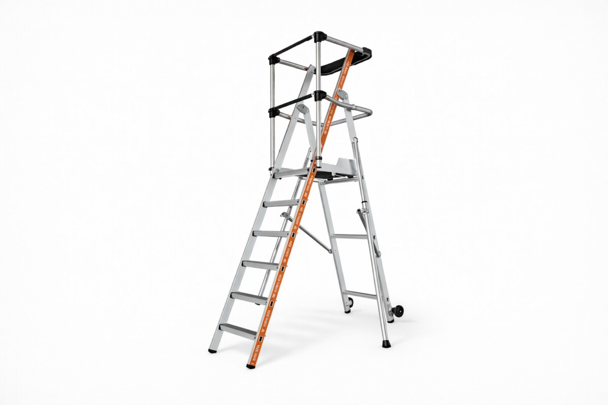 Il permet de travailler en toute confiance sur une plateforme haute, sans tremblement, sans glissement, avec un accès direct à la zone de travail. Il évite les solutions de fortune souvent risquées (tabourets, échafaudages mal montés), tout en se rangeant facilement dans un local technique ou un fourgon.