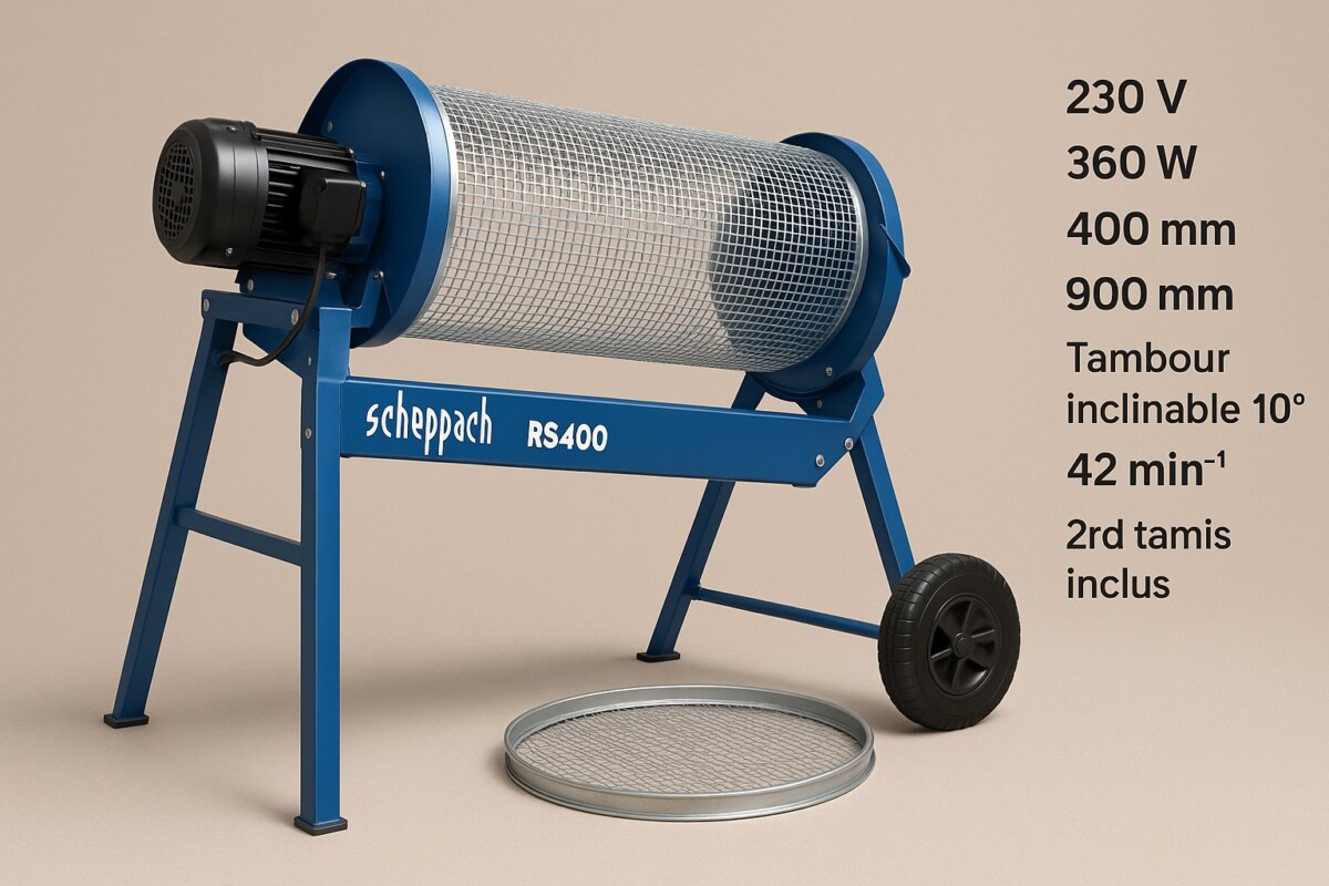 Là où d’autres modèles s’essoufflent, le RS400 combine puissance et simplicité d’usage. Sa robustesse est saluée par les utilisateurs : structure en acier, stabilité au sol, entretien minimal, efficacité redoutable. Il tamise vite, bien, et longtemps.