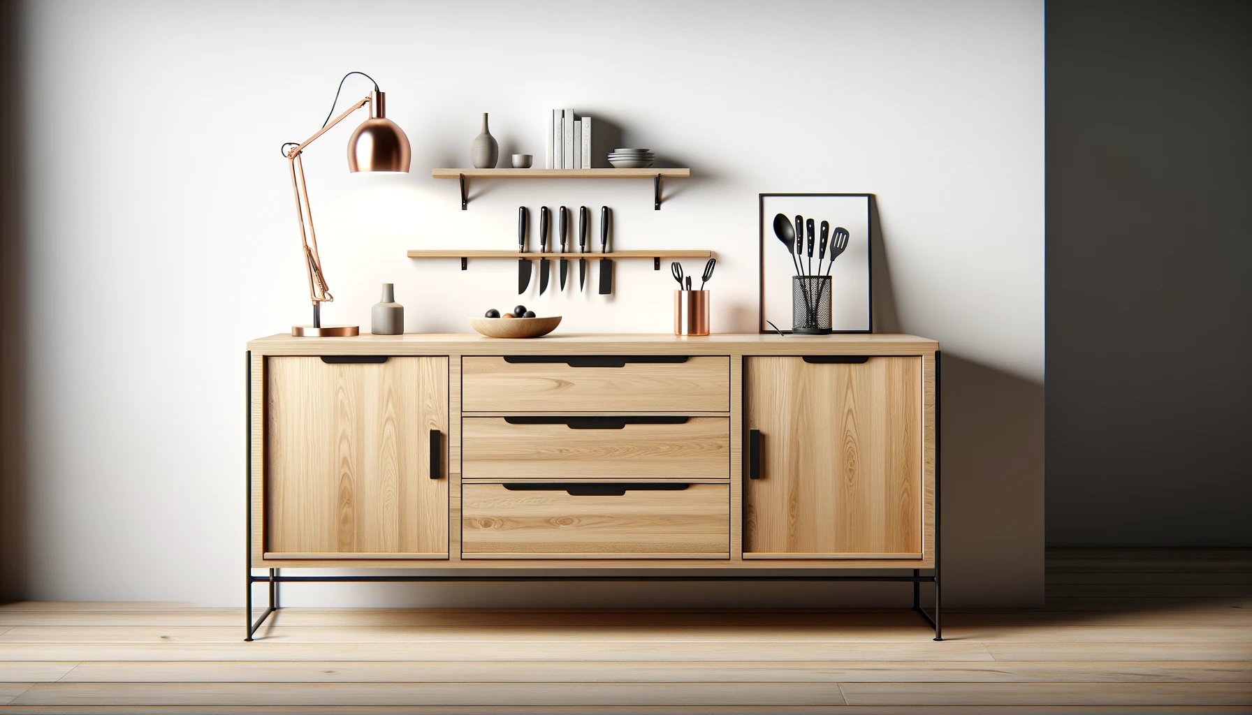 - Design élégant en bois et noir pour une esthétique moderne