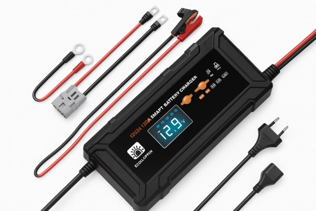 Avec une compatibilité 12V et 24V, ce chargeur s’adapte automatiquement à la tension de vos batteries lithium, détecte leur état de charge, et ajuste le courant pour les recharger efficacement, en toute sécurité. Il fonctionne en toute autonomie — vous branchez, il gère tout.