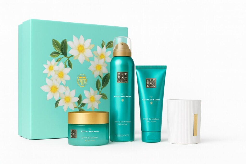 Rituals a bâti son succès sur des rituels inspirés de la sagesse asiatique, et le coffret Karma en est l’exemple parfait : des textures sensorielles, des fragrances relaxantes et des formules clean (94 % d’ingrédients d’origine naturelle).