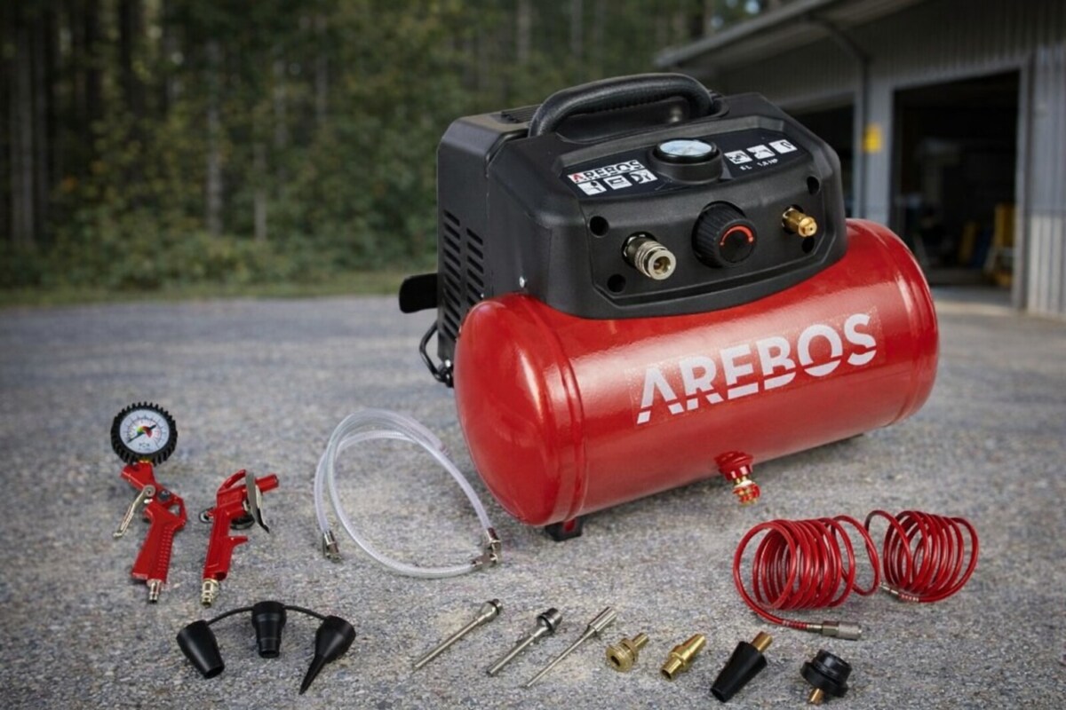 Avec sa cuve de 6 litres, sa pression de 8 bars et ses 13 accessoires, le compresseur AREBOS offre une solution simple et pratique pour utiliser l’air comprimé dans un garage ou un atelier.