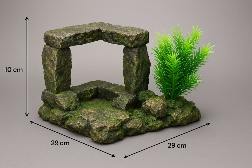 Avec ses dimensions généreuses de 29 x 29 x 10 cm, cette base décorative se pose facilement sur le substrat (avec gravier recommandé pour la stabilisation), et offre un rendu professionnel sans effort. Grâce à ses deux orifices d’évacuation d’air, elle reste bien en place une fois immergée. Le tout en plastique de qualité, conçu pour durer.