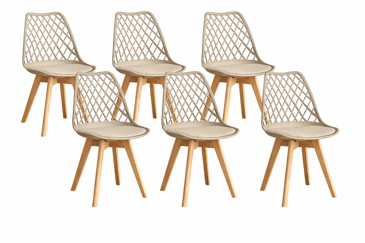 Aménager une salle à manger peut rapidement coûter cher lorsqu’il faut acheter plusieurs chaises. En ce moment, une promotion intéressante concerne le lot de 6 chaises Wokaka style scandinave avec dossier en maille et assise en cuir beige, proposé à 113,99 € au lieu de 119,99 €.