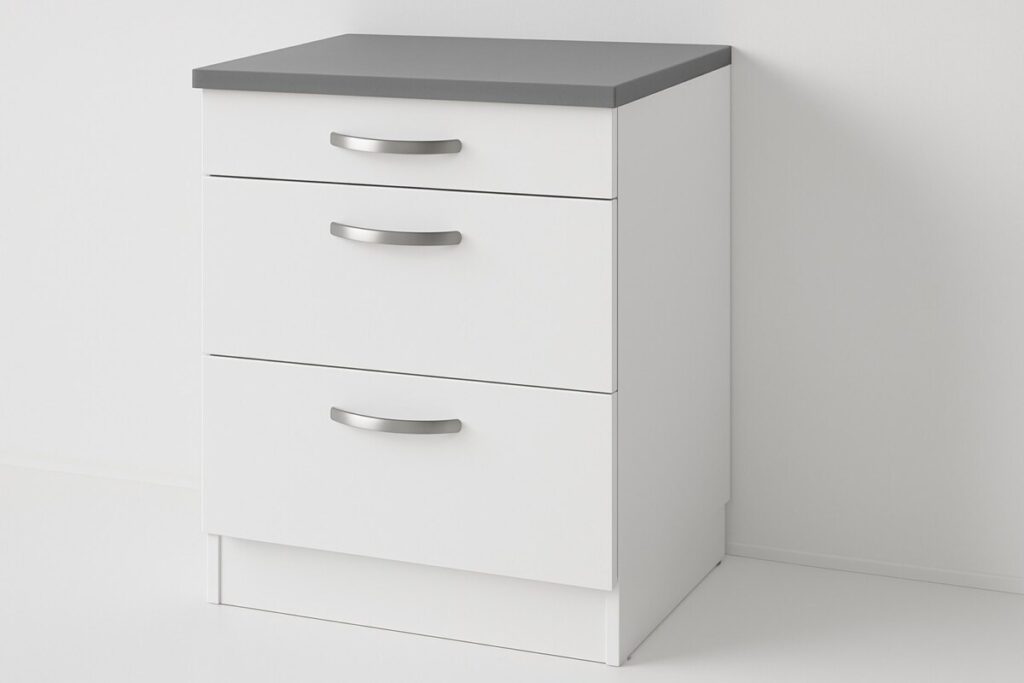 Avec ses trois tiroirs spacieux, sa largeur de 60 cm et son look épuré, ce meuble s’intègre facilement dans toutes les cuisines, même les plus petites. Idéal pour ranger vos couverts, ustensiles, torchons ou accessoires de cuisson, il combine design élégant et praticité redoutable. En plus, son montage est un jeu d’enfant grâce au kit fourni.