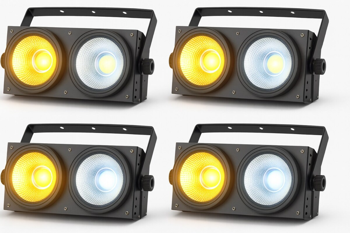 Ce pack comprend 4 projecteurs à double lentille (2x100W) offrant un éclairage blanc chaud et froid, idéal pour créer des ambiances dynamiques dans les bars, clubs, soirées DJ, mariages ou tout autre événement festif. Compatible DMX, vous pouvez tout piloter comme un pro.