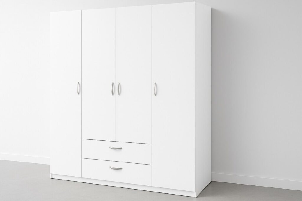 - Type : armoire avec 4 portes battantes et 2 tiroirs