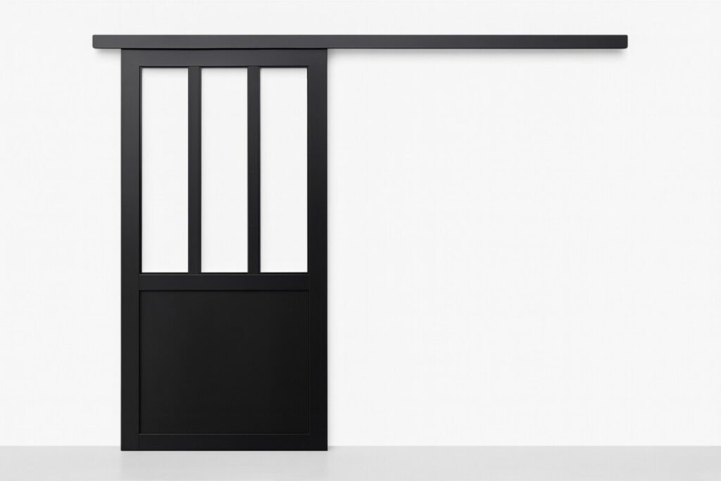 👉 Voir la porte coulissante atelier noire vitrée en promo sur ManoMano