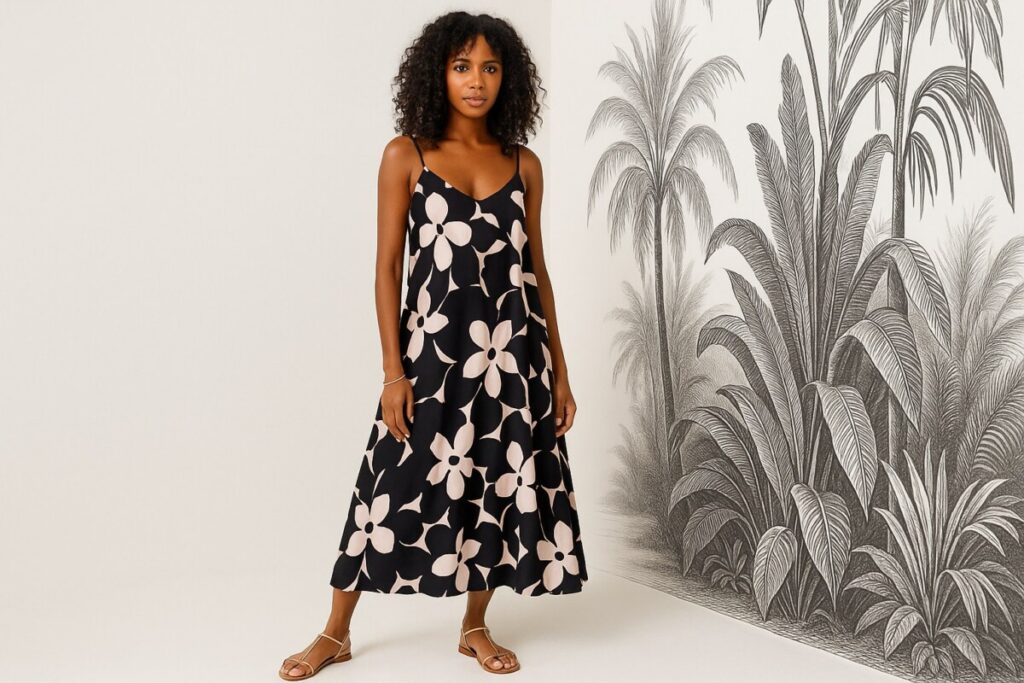 Mais ce n’est pas tout. Derrière sa légèreté se cache une composition responsable en viscose Lenzing™ EcoVero™, une matière douce, fluide, et surtout plus respectueuse de l’environnement. Le tout proposé à un prix canon, qui rend cette robe encore plus désirable. Les quantités sont limitées, et avec l’été qui s’installe, les tailles s’envolent rapidement. Si vous cherchez une tenue stylée, pratique et éthique pour vos vacances ou vos week-ends au soleil, ne tardez pas !