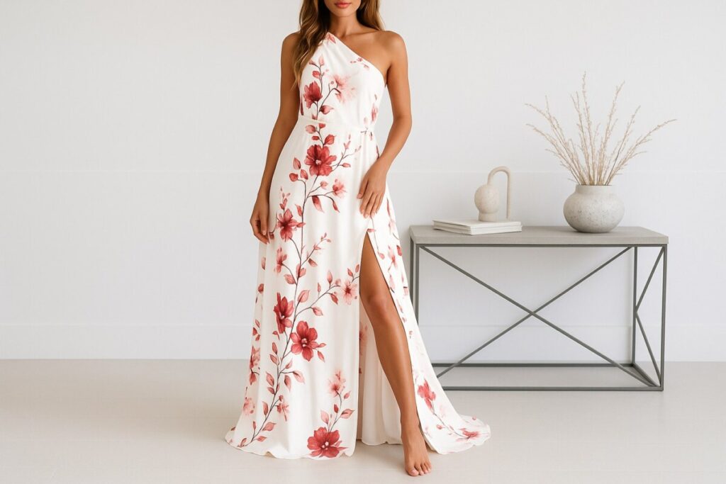Le détail « twist » à l’épaule, l’effet découpé, la fente sur la jambe et l’imprimé floral donnent à cette robe un côté à la fois romantique et moderne. Vous pouvez la porter avec des talons pour un look red carpet, ou avec des sandales pour un dîner en bord de mer.