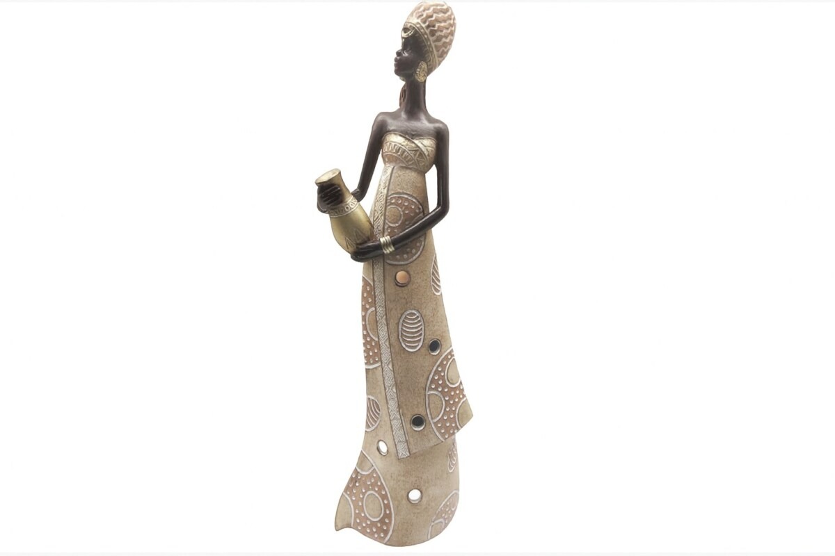 La décoration n’est pas qu’une affaire de tendance : c’est aussi une affaire de caractère. Cette statue africaine haute de 32 cm, fine et élancée, représente des éléphants dans une posture symbolique de puissance et de sagesse. Le contraste entre les teintes dorées, jaunes et noires crée un effet visuel captivant, parfait pour une étagère, une console ou une niche murale.