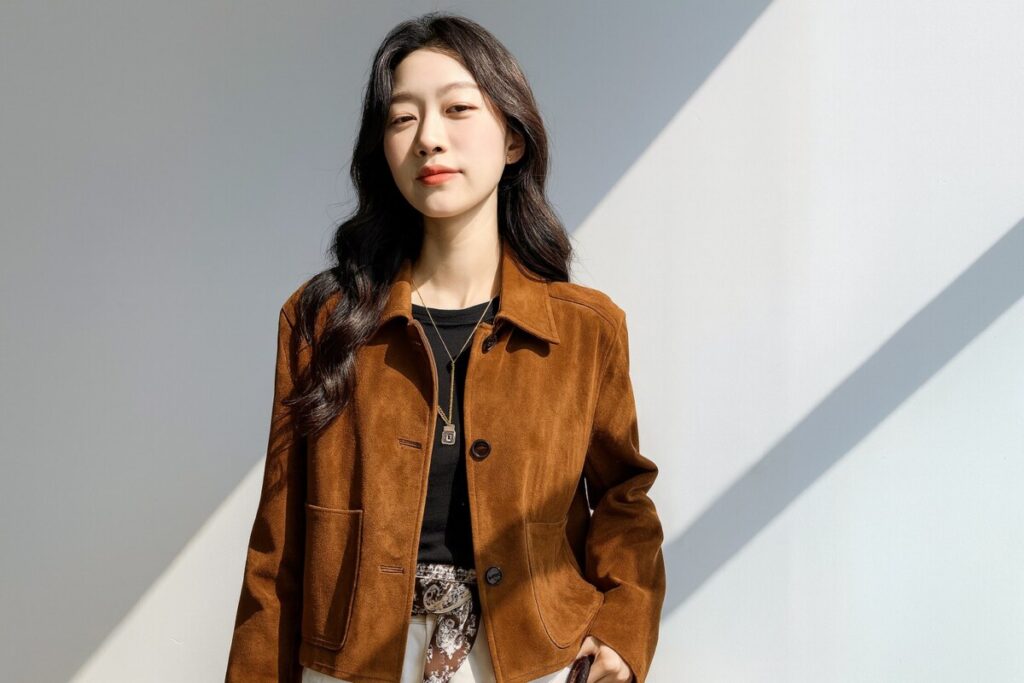 Les vestes courtes en daim et cuir ont le vent en poupe depuis plusieurs saisons, mais ce modèle tire son épingle du jeu grâce à :
