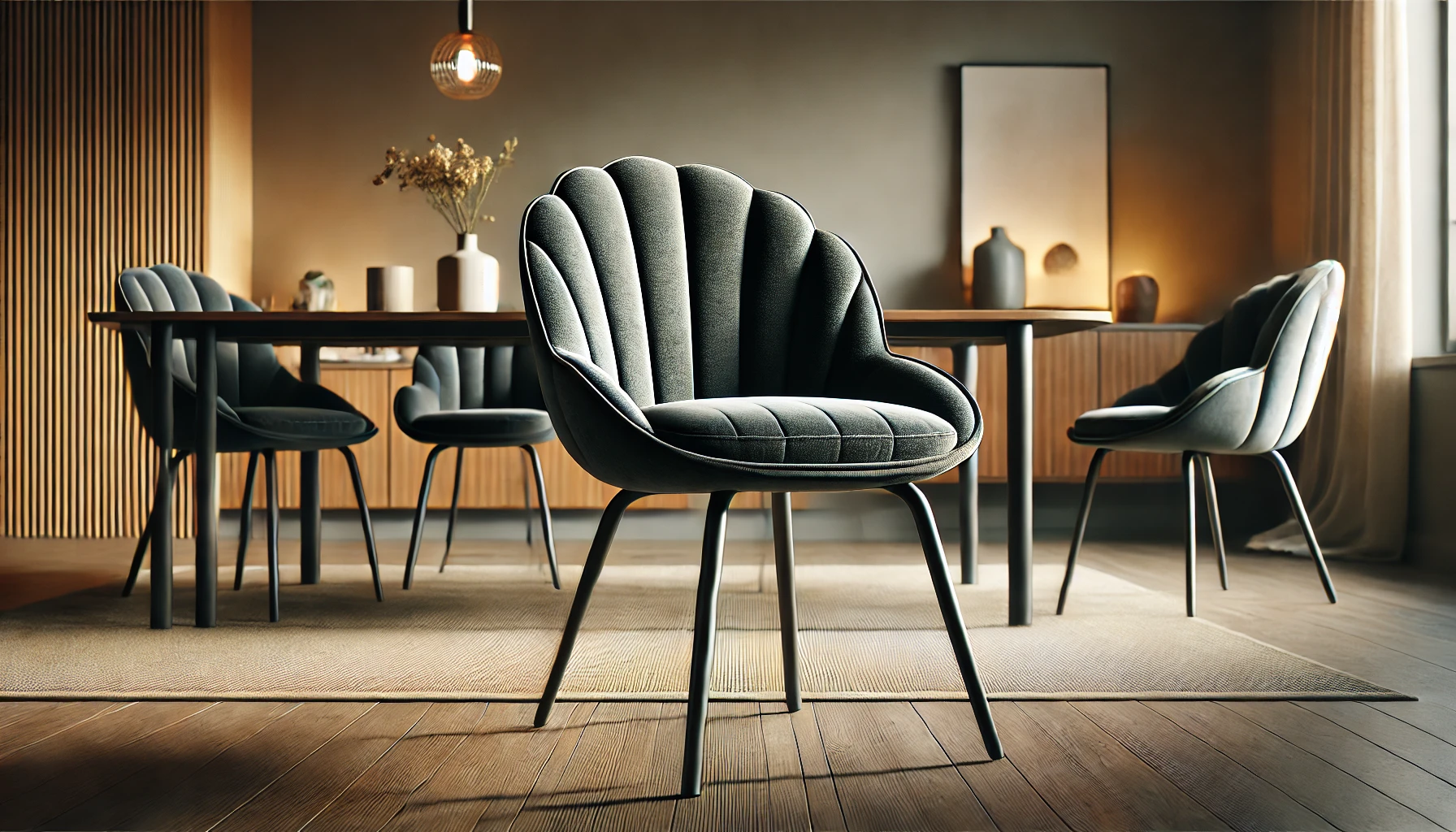 👉 Disponible ici : Chaise Cyrus Velours Gris Foncé – Rakuten