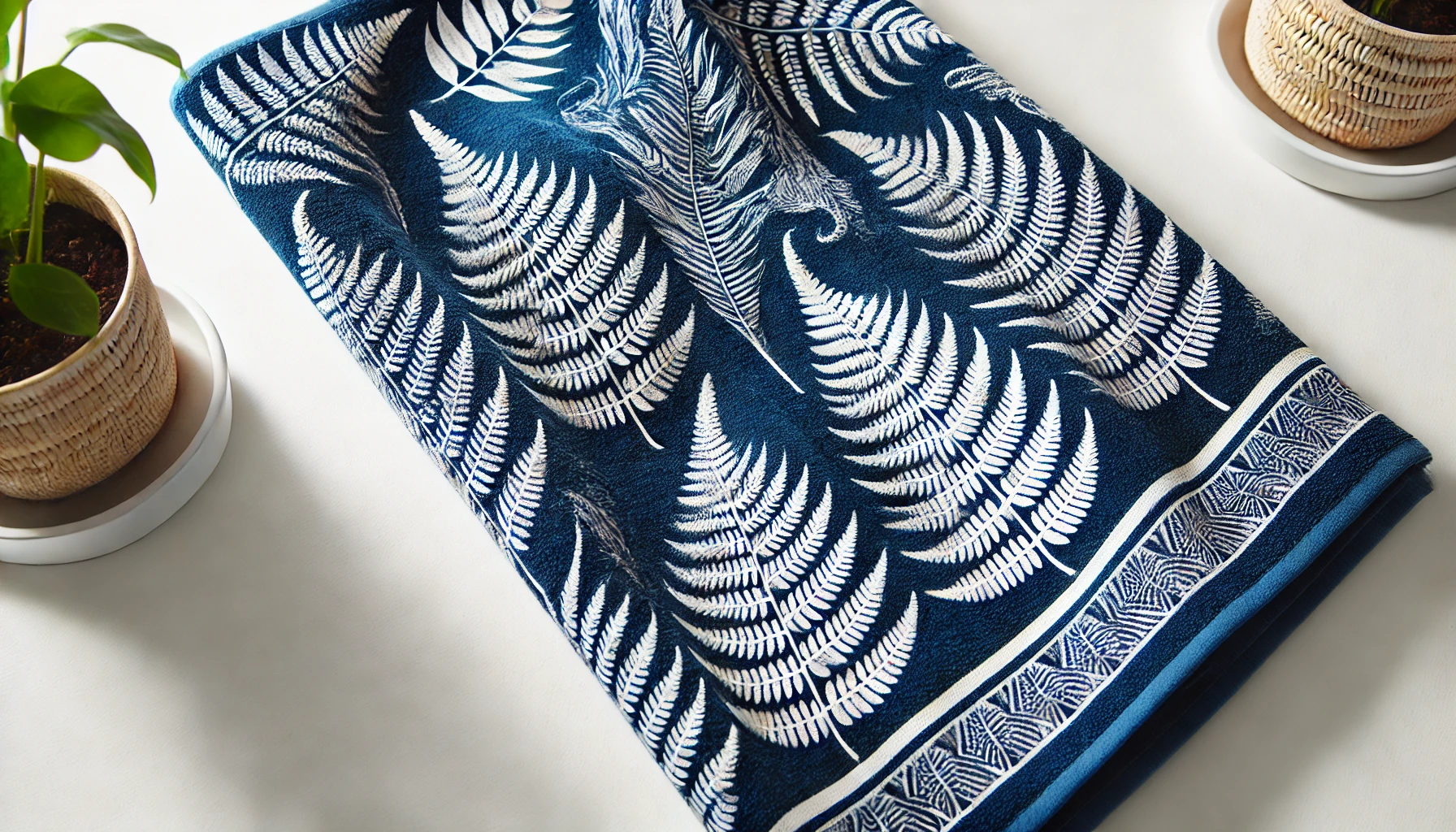 À l’occasion du quarantième anniversaire de Françoise Saget, la collection « Bleu Fougères » revisite la première collection de linge de bain de la marque, offrant une touche de nostalgie et de tradition.