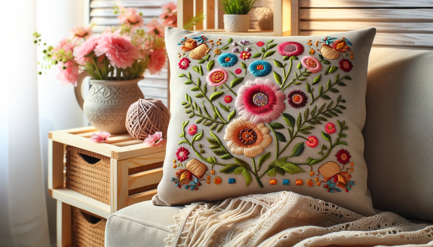 - Design Élégant : La broderie multicolore ajoute une touche d’élégance et de gaieté à votre intérieur.
