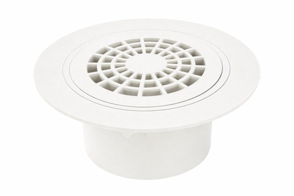 Nicoll – Siphon de sol sortie verticale 50-63 mm – PVC blanc – Grille 133 mm – Classe K3.