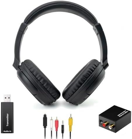- 4 Wireless TV Headset with USB Transmitter for Seniors, Bluetooth 5.3 Supra-Ear Headphones, 30 Hours Battery, Retractable Headband Wireless TV Headset, Coaxial Support Optical RCA USB Audio Output
