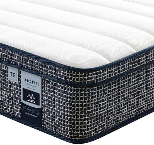 Inofia Matelas 160×200 Tartan-E,7zones,Matelas à Ressorts ensachés avec Mousse à mémoire de Forme orthopédique,Gel rafraîchissant HermoReg,Housse VitaFlow 3D – 28 cm,Certifié ÖKO-TEX® Essai100nuits