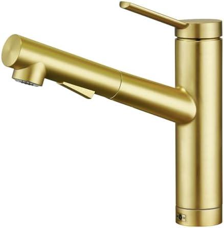 CREA Kitchen Tap with Pull-Out Spray, 2 Jet Modes, 120° Swivel, Single-Lever Sink Mixer Tap, Gold