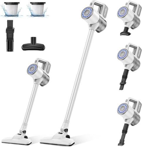 L’aspirateur sans fil S6PRO est équipé d’un moteur 2025 haute performance offrant une puissance d’aspiration maximale de 30 KPa, permettant ainsi de nettoyer facilement la poussière, les miettes, les éclats et les poils d’animaux. Sa batterie lithium-ion offre jusqu’à 30 minutes d’autonomie continue pour le nettoyage quotidien de la maison avec une seule charge. Son système de filtration cyclonique scellé qui nettoie jusqu’à 99,97 % des particules de poussière microscopiques offre un environnement de vie idéal et élimine la pollution secondaire de l’air. Le filtre peut être réutilisé après le nettoyage. Ce modèle est polyvalent 4 en 1 avec poignée ergonomique et accessoires multifonctions, se transformant facilement en aspirateur à main portable pour nettoyer escaliers, canapés, lits, tables et voitures. Voir le produit sur Amazon.