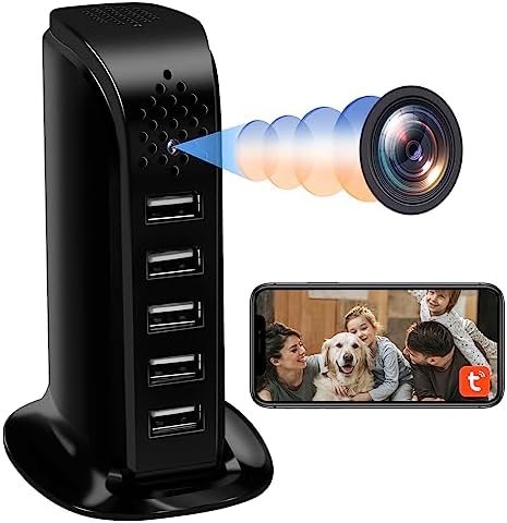 - 1 Nisanmoon Caméra Cachée WiFi 2.4/5G, Caméra WiFi avec Chargeur USB 5 Ports, Caméra Espion WiFi HD 1080P, Mini Caméra Espion WiFi Cachée avec Détection de Mouvement et Vision à Distance