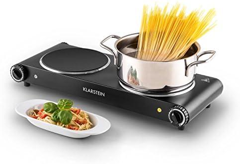 Klarstein Captain Cook² Duo – Double plaque de cuisson, 1200 watts, 18 cm de diamètre, Cristal anti-rayures, 300°C en 30 secondes, Fentes d’aération, Voyants LED, Noir
