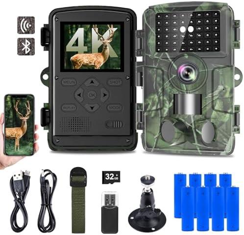 Camera de Chasse, Camera Chasse HD 4K/60MP avec App Mobile, Détecteur de Mouvement, Vision Nocturne, Temps de Déclenchement de 0,05s, Caméra IR Pour Animaux Sauvages avec Carte SD 32GB et 8*Piles AA